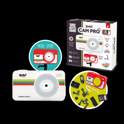 Un appareil photo 2 en 1 avec un mode voyage pour les vacances et un mode sport pour filmer tes aventures.