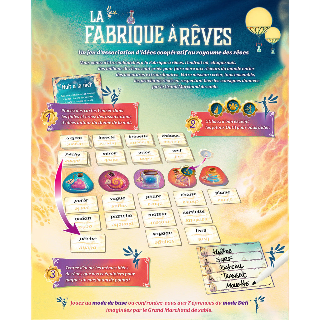 La Fabrique à Rêves est un jeu d'association d'idées original qui vous fait plonger dans plein d'univers différents, des plus concrets aux plus imaginaires.