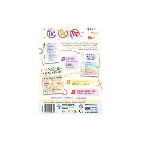 Dans Tic Tac Top, choisissez des mots et organisez les dans votre grille de morpion ! Formez le plus de lignes de 3 mots communs avec ceux choisis par le leader !