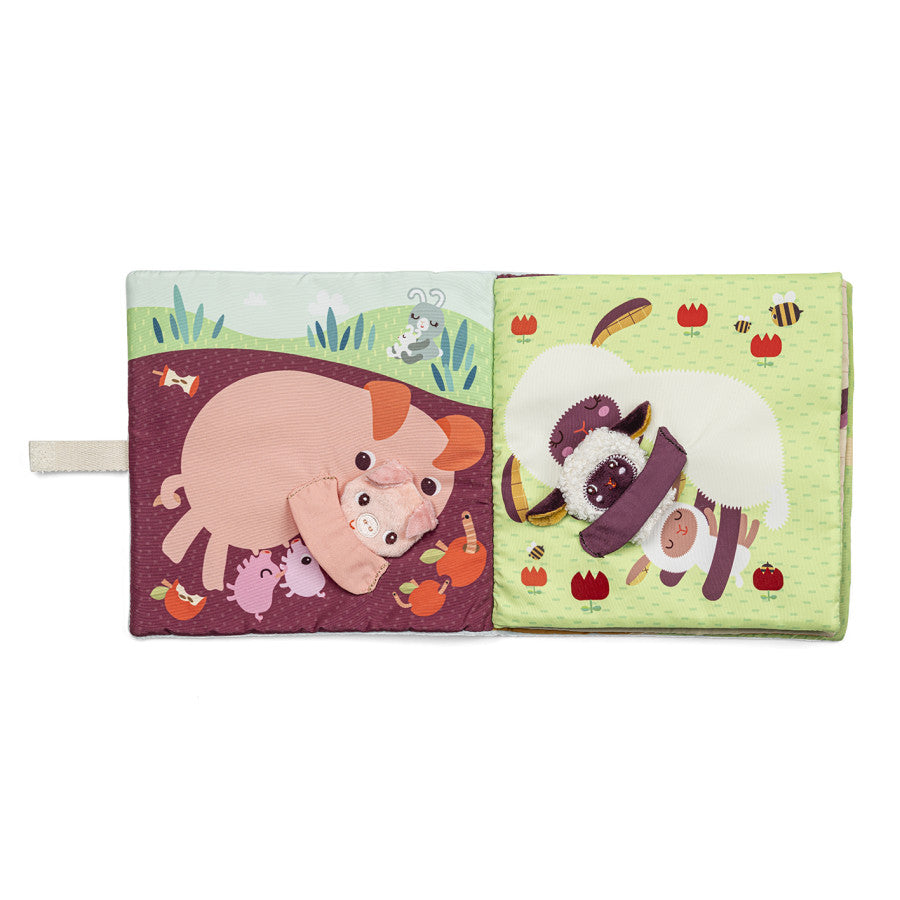 La ferme connaît un véritable baby-boom ! Avec ce livre d’activités, bébé découvre les animaux de la ferme et leurs petits, dès 10 mois. Accompagné de 5 marionnettes à doigts, ce livre en tissu promet de bons moments de partage autour d’une petite histoire et de jeux. En douceur, votre tout-petit développe alors sa vue, sa motricité et sa logique, mais aussi son imagination. Une pochette de rangement sur la couverture de ce livre d’éveil permet de glisser tous les bébés animaux au début de l’histoire. En famille, aidez-les à retrouver chacun de leur parent ! Le veau, le poussin, l’agneau, le porcelet et l’ânon ont, eux aussi, besoin de leur parent pour se rassurer et bien grandir à la ferme. Sur chacune des pages, votre enfant glisse le personnage au bon endroit. Vous pouvez aussi rendre le récit plus dynamique et rigolo en utilisant les marionnettes à doigts