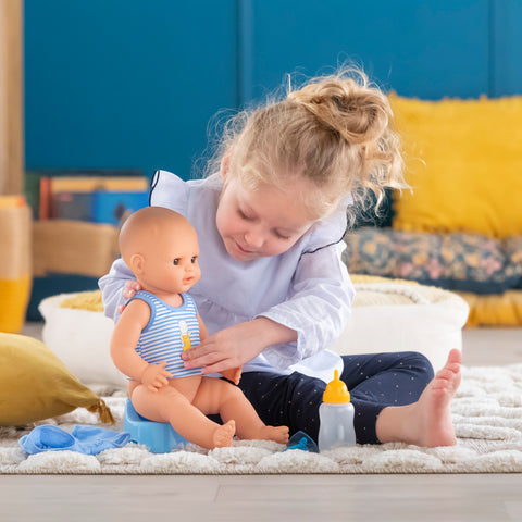 Grand poupon sexué de 36cm, à la délicate senteur de vanille. Corps vinyle. Tient assis. Yeux dormeurs.
