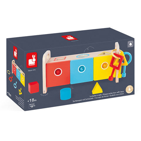 C'est bien connu, les bébés adorent les trousseaux de clefs. Cette boite à clefs est le parfait compromis pour développer logique et motricité fine par le jeu ! Dès 18 mois, votre enfant va pouvoir s'amuser à insérer les différentes formes aux bons endroits, puis choisir la bonne clef pour ouvrir la serrure et récupérer les pièces. Idéal pour l'apprentissage des formes et des couleurs, ce jouet d'éveil permet à bébé de développer son sens logique. Facile à manipuler, cette boite à clefs contient 6 blocs (1 triangle jaune, 2 ronds bleus et 3 carrés rouges), et 3 clefs en plastique qui peuvent s'attacher à la boite sous forme de trousseau pour ne jamais les perdre ! Bien pensée, un côté de la boite est transparent et permet à bébé de voir les pièces tomber. Cette face indique aussi le type et le nombre de formes à placer. Ce jouet d'éveil en bois aux couleurs agréables est peint à l'eau et fait partie de notre collection Essentiel.