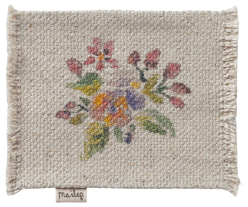 Ce tapis, orné d'une belle fleur imprimée en son centre, peut être utilisé partout où vous le souhaitez dans les maisons de poupées.