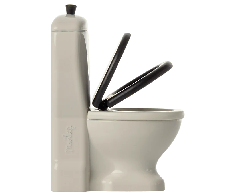 Le siège noir s'ouvre et se ferme, et la chasse d'eau le rend réel et ludique. Taille parfaite pour la famille souris.