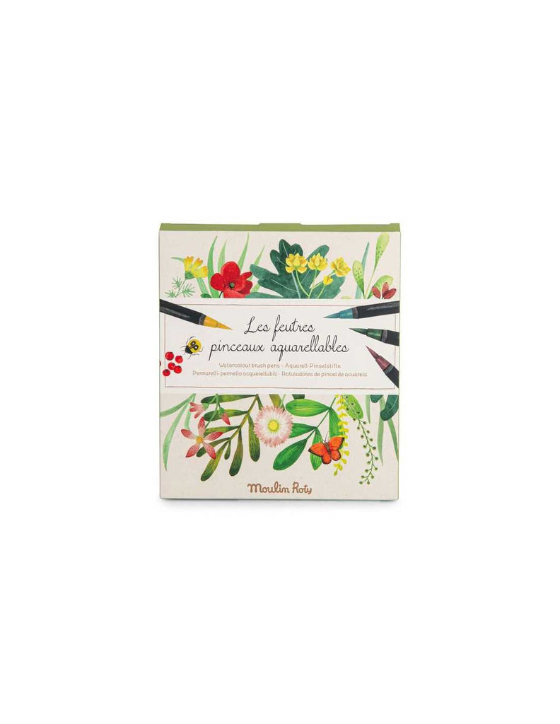Découvrez les feutres pinceaux aquarellables de la collection Le Jardin du Moulin de Moulin Roty, un magnifique coffret de 12 feutres à pointe souple conçu pour stimuler la créativité des enfants dès 3 ans.