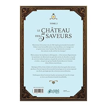 Bienvenue à Gourmet-city, la ville la plus gourmande du monde ! Grâce à une incroyable usine et ses machines, on y mange tout ce qu'on veut, toute l'année. Plus besoin de se soucier des saisons ou de cultiver les champs ! Mais un jour, les machines se détraquent... et les saveurs disparaissent. Les pommes ont désormais un goût de carton, le chocolat a un goût de carton et même la pizza a un goût de carton ! La vie devient fade et triste... jusqu'à ce qu'une bande d'amis découvre l'entrée d'un château mystérieux. Rejoignez Elvis, Lola, Colette et Carlton dans leur quête des saveurs perdues. Ouvrez la porte d'un monde fantastique où la nature reprend ses droits, protégée par des créatures extraordinaires. Embarquez dans l'aventure la plus savoureuse de tous les temps et vivez une histoire d'amitié inoubliable.